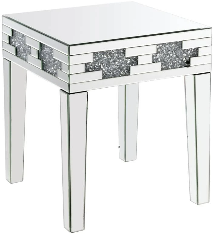 Undeniably magnificence with glam flair, this Noralie end table is meant to become your favorite focus in your living room. Mirrored accents with faux stones inlay achieve a modern glamour look. This piece makes a glam style statement that offers a satin sheen to your room decor.Read More