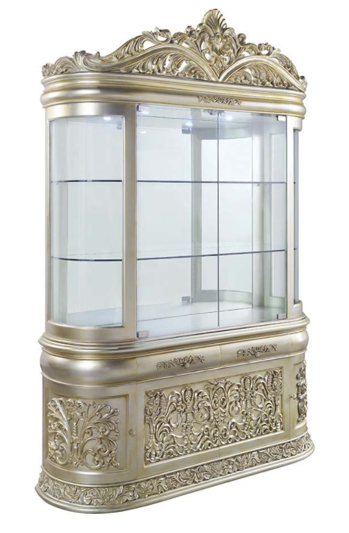 Create an eye-catching functional focal point of opulence with the Sorina curio cabinet that is grand, yet charming and approachable. Finished in gold and silver, the cabinet glistens with a touch of glam, featuring a mirrored back panel and a top crown.Read More