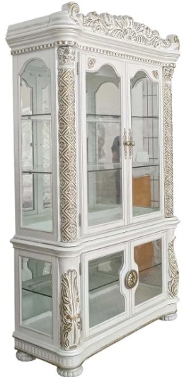 The expansive glass shelves let you display your fine china and crystalware, the touch light will help illuminate all their beauty. It boasts a beautiful crown that shows its regal status.