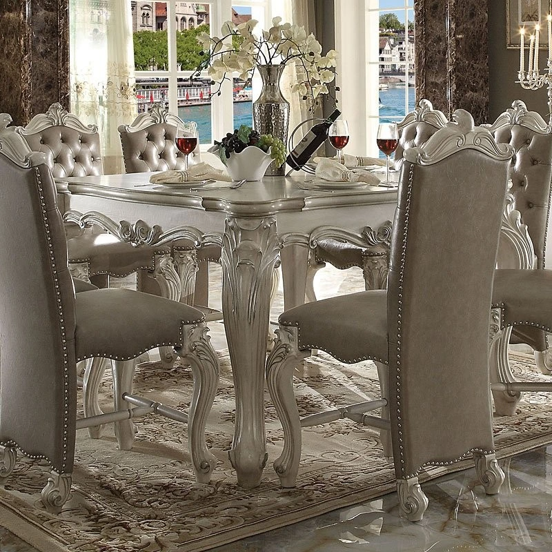 Irresistibly inviting, the Versailles Counter Height Table displays the unrivaled beauty of the traditional dining. The dining table reflects highly decorative base with oversized scrolled feet. This counter height collection is available in two different colors, cherry oak and bone white, making you flexible choice on home decor.Read More