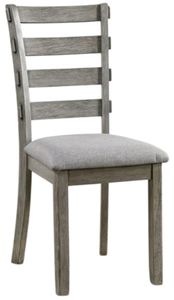 This distinctly shaped chair will help you build an outstanding dining space. The soft gray linen-like fabric, offers comfortable seating. The ladder back design shows protrusions on the sides of the chair.Read More