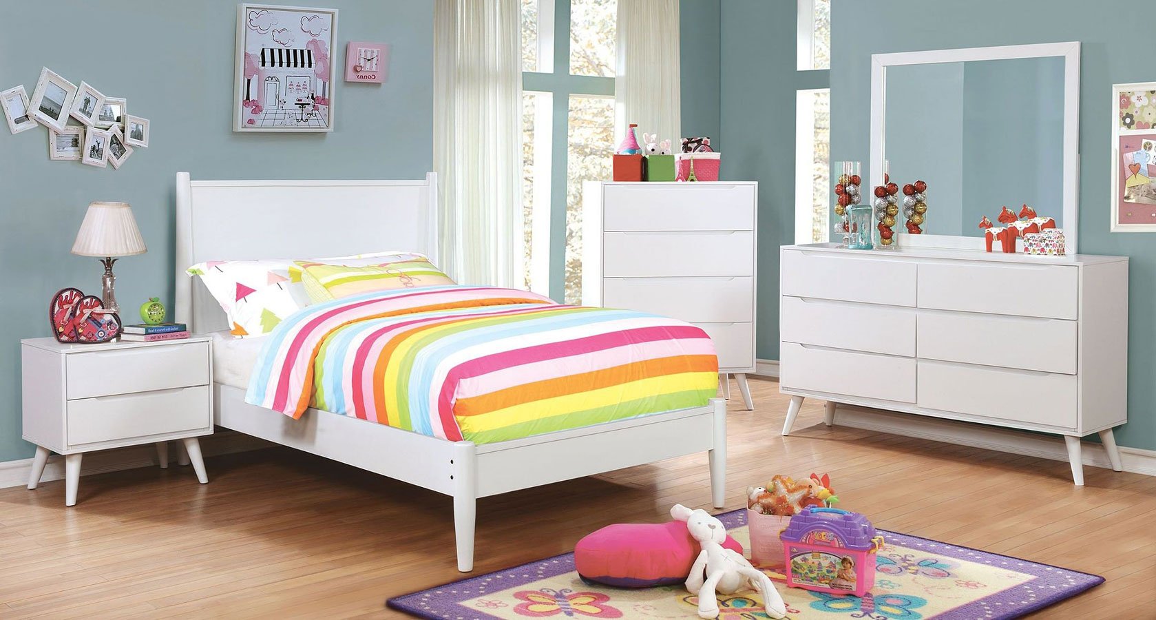 For a quick modern update to your home, this collection will add that trendy mid-century appeal. Featuring a sleek white finish and wooden headboard, this panel bed is complete in a platform style with an included mattress ready slat kit.Read More