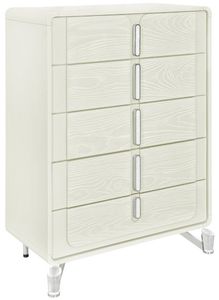 The Lyra Chest offers generous storage while elevating your bedroom decor. Finished in light beige wood with striking acrylic legs, it features multiple full-extension, felt-lined drawers accented by oval metal handles. Stylish and functional, the Lyra Chest ensures your wardrobe stays organized in timeless elegance.Read More
