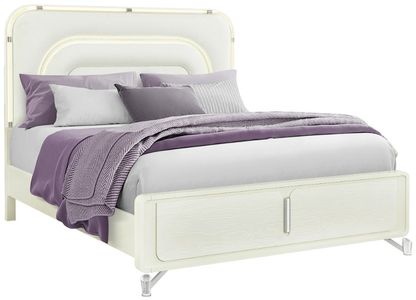 The Lyra Queen Bed is the ultimate statement piece, designed to blend comfort with high style. Its elegantly curved headboard, upholstered in soft white fabric, is illuminated with LED lights that follow the arc in a radiant, rainbow-like glow. Supported by a sturdy slatted base and framed in light beige wood.Read More