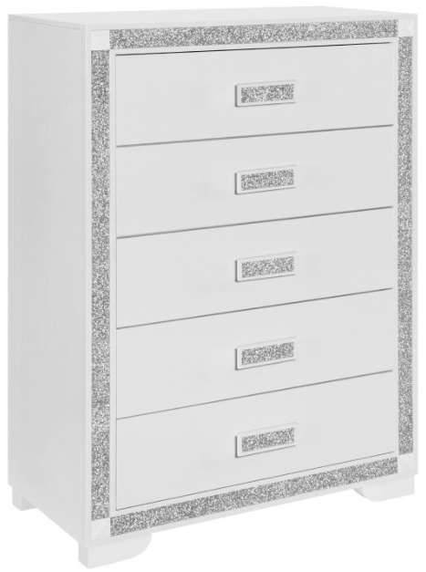 Maximize storage without sacrificing style with the Soleil Chest. Its tall, sleek profile is enhanced by the crushed crystal encasement and polished handles, while multiple drawers keep your essentials organized and your bedroom looking effortlessly elegant.Read More