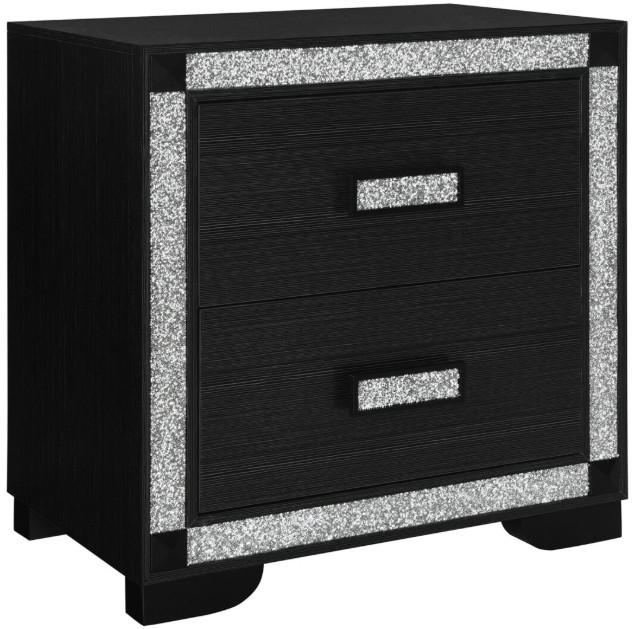 The Soleil Nightstand is a chic companion for your bedside. Its compact design offers two roomy drawers for convenient storage, framed by sparkling crushed crystal trim and accented with crystal handles. A perfect blend of practicality and style.Read More