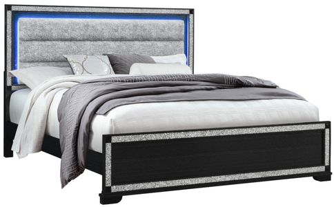 The Soleil King Bed blends modern sophistication with a touch of glamour. Its rich dark charcoal frame is paired with a grey upholstered headboard outlined in shimmering crushed crystal trim. The built-in LED lights add a warm, ambient glow, making it a show-stopping centerpiece for your bedroom.Read More
