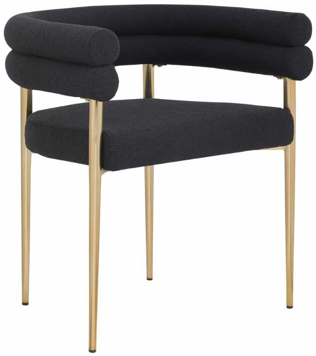 Bring boldness to your dining area with this Brielle dining chair from Meridian Furniture. Its curved, brushed gold metal frame provides support, giving it contrasting colors as well as offering a comfortable place for you to sit. Crafted out of iron and foam and upholstered with boucle fabric.Read More
