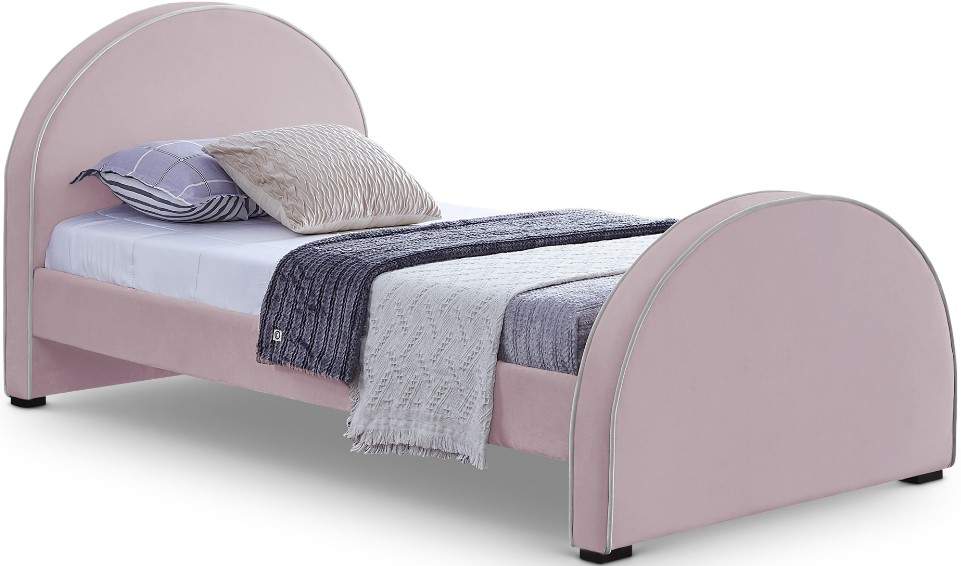 Get a good night's sleep with this Brody pink velvet twin bed. Crafted from a mixture of wood, velvet, and foam, this bed is as comfy as it is cozy. Its soft pink velvet bed frame features cream velvet piping, giving it an appearance reminiscent of gingerbread.Read More