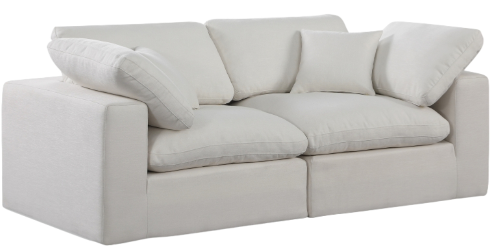 Wrapped in rich cream durable linen textured fabric upholstery, this sofa offers a plush embrace of overstuffed down feather cushions, carefully crafted to deliver the highest level of comfort. The perfect seat for creating an oasis for relaxation, this sofa has thick foam surrounding its frame for added support and coziness.