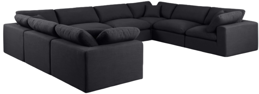 Wrapped in rich black durable linen textured fabric upholstery, this sectional offers a plush embrace of overstuffed down feather cushions, carefully crafted to deliver the highest level of comfort. The perfect seat for creating an oasis for relaxation, this sectional has thick foam surrounding its frame for added support and coziness.