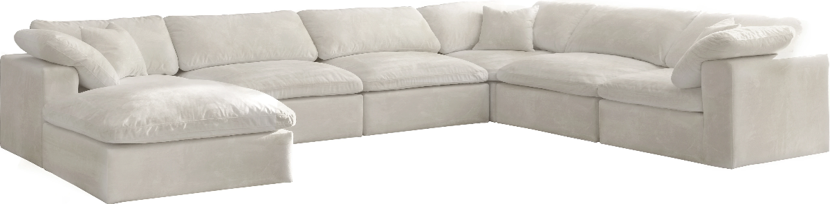 Bring home this Cozy 7-piece sectional for a fresh new look. Embrace casual elegance with this Cozy velvet cloud-like comfort modular fiber-filled seating option. Handsome from all angles, this piece features soft cream velvet upholstery to make it an easy fit in any room.Read More