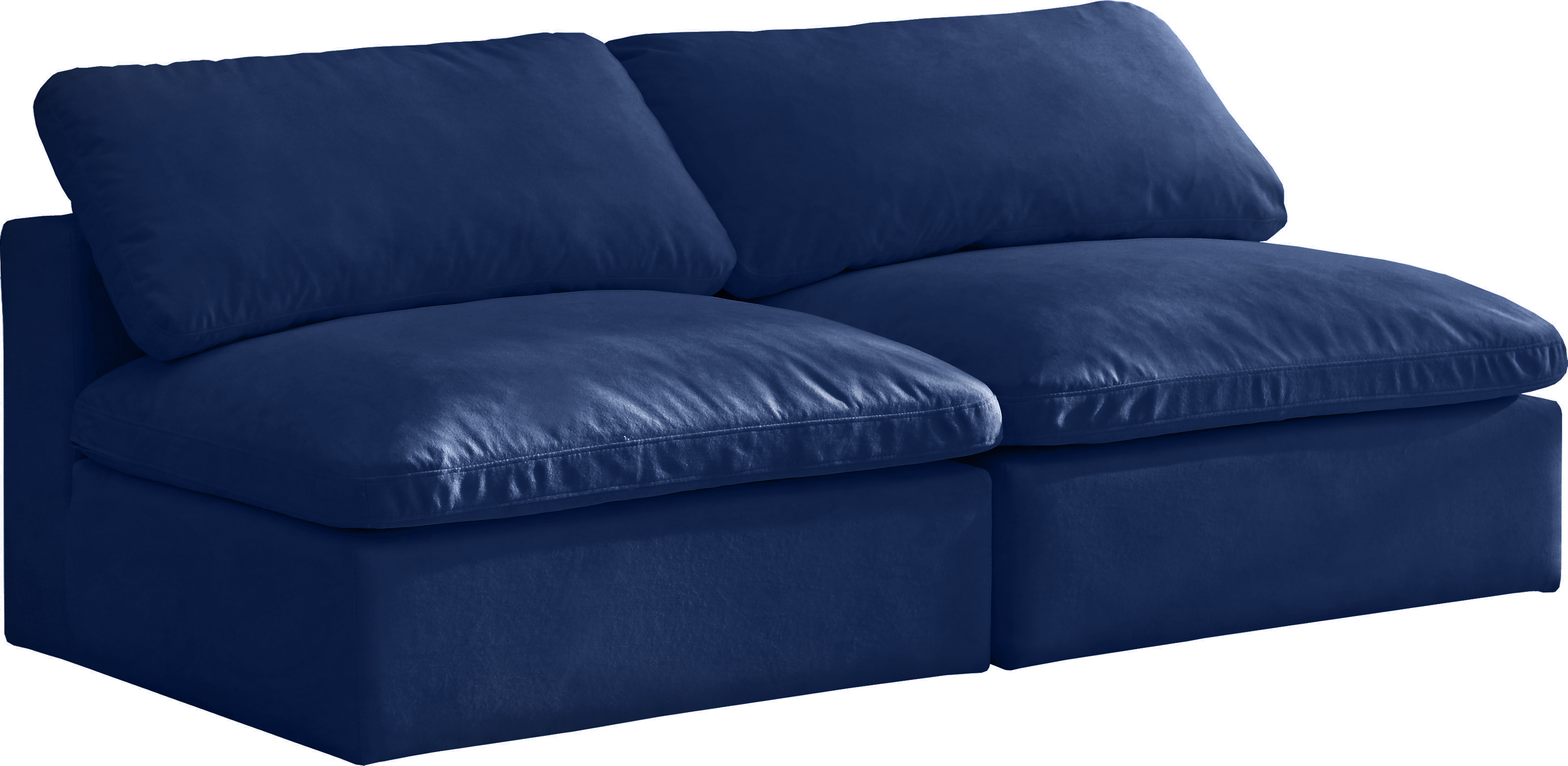 Bring home this Cozy armless sofa for a fresh new look. Embrace casual elegance with this Cozy velvet cloud modular down-filled seating option. Handsome from all angles, this piece features soft Navy velvet upholstery to make it an easy fit in any room.Read More