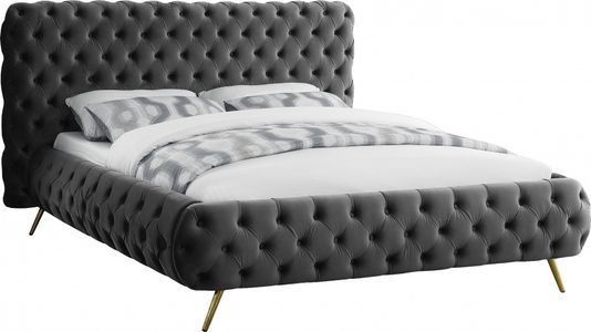 Surround yourself in modern luxury when you add this Delano velvet King Bed to your bedroom oasis. Sumptuous by design, this bed features all-over button tufting for a look that is nothing short of stunning. This dimensional bed features a heavily padded headboard and side rails, each covered in magnificent-to-the-touch velvet.Read More