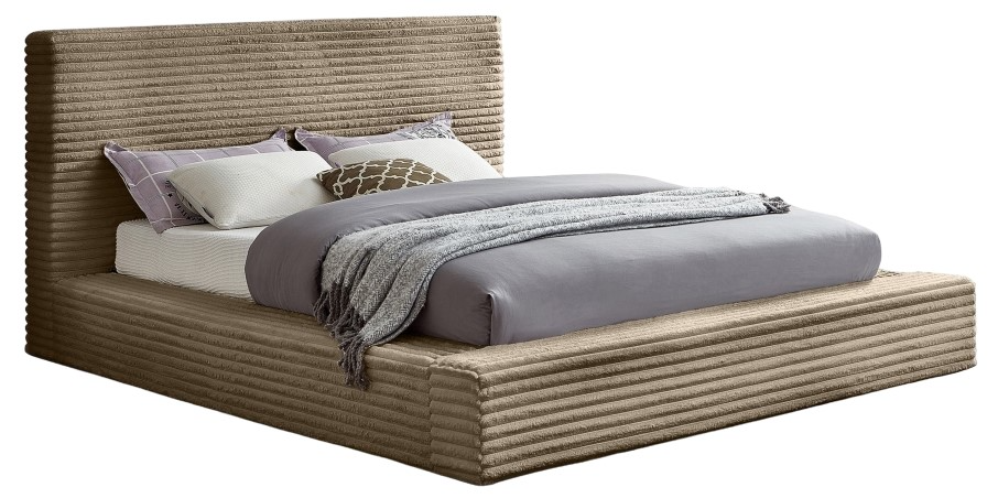When a bedroom rehab is on your "to do" list, this Dexter taupe corduroy fabric full bed is a great jumping-off point. Designed to give your bedroom a fresh new face fast, this full size bed is upholstered in soft taupe furry textured corduroy fabric.Read More