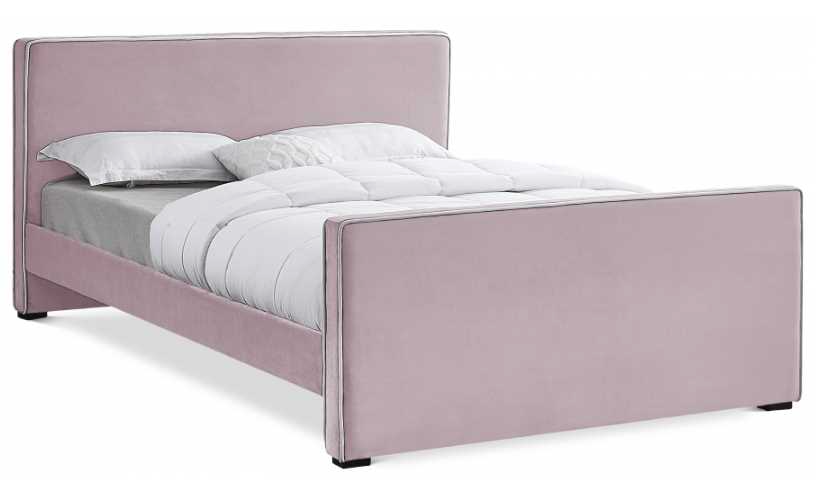 Lend your bedroom an elegant look with this Dillard velvet bed. Live out your velvet fantasy with this bed's soft beige velvet upholstery that runs the full length of the bed from headboard to footboard and is trimmed with velvet piping in a contrasting color for a contemporary vibe.Read More