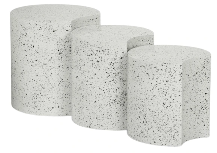 Beautify your room with this Dimple white end table. Crafted from white terrazo patterned iron metal, its modular shape allows you to connect as many as needed, offering versatility and style. With a contemporary nesting design, it adapts effortlessly to various spaces, whether used individually or in clusters.Read More