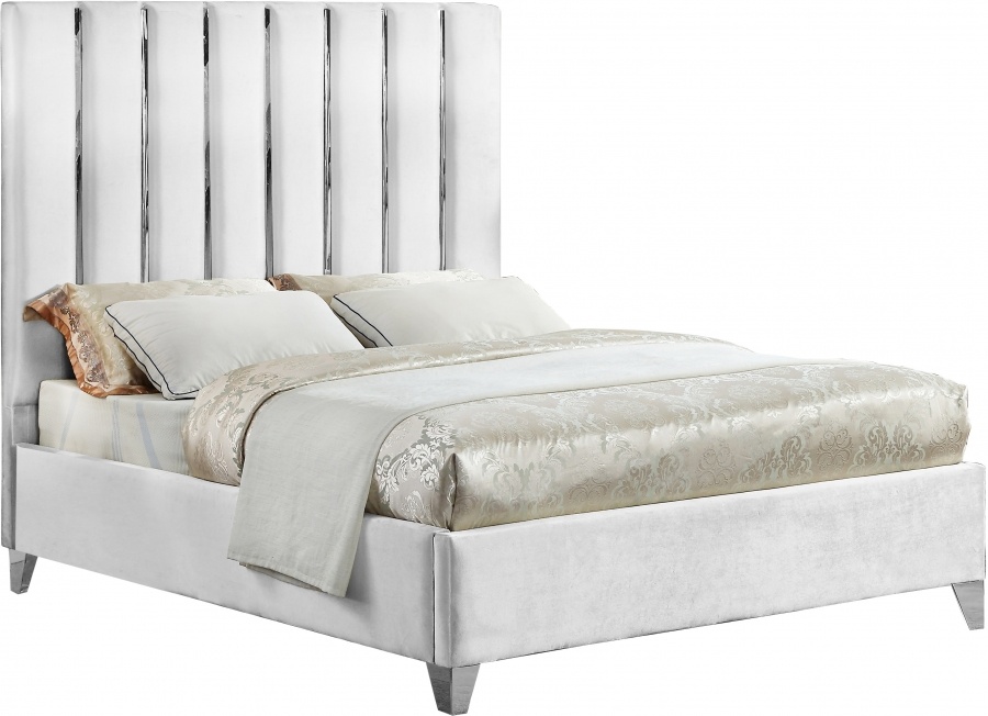 Create a bold yet welcoming sanctuary in your bedroom with this Enzo velvet Full Bed. The chrome channel design features velvet fabric upholstery for a sleek, glamorous look. The chrome legs provide support for the plank-style base, ensuring durability and long-lived beauty.Read More