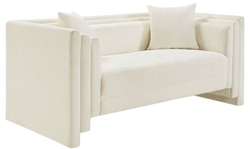 Make this Everett cream chenille fabric loveseat the center of a cozy reading nook. Handsome from every angle, this posh loveseat is plumply appointed to put supreme comfort within easy reach. Soft black chenille upholstery fabric adds to its lavish feel while a staggered design gives it a modern edge.Read More