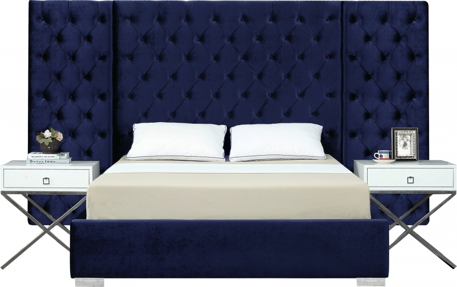Rejuvenate your bedroom space with this Grande Navy Velvet King Bed. Svelte velvet covers each inch of this magnificently styled bed, lending it a bit of softness and glamour.Read More