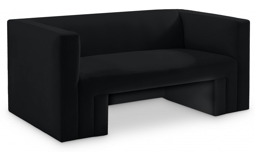 Spice up your living room or den with this Henson velvet loveseat. This handsome chair has a boxy design that suits any contemporary room with ease. It's covered in rich black velvet that's luxuriously soft to the touch and against the body, making it everyone's favorite seat.Read More