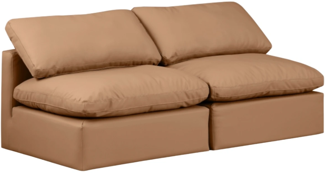 Experience ultimate comfort and style with our cognac vegan leather Indulge Sofa. The luxurious vegan leather will elevate the aesthetic of any room. This sofa provides ample space for you to relax while its modular build offers the option of unlimited configurations.Read More