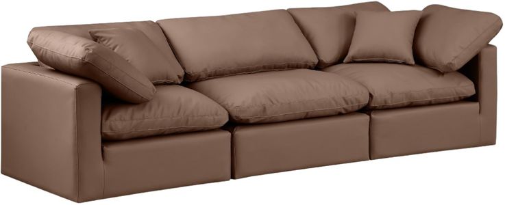 Experience ultimate comfort and style with our brown vegan leather Indulge Sofa. The luxurious vegan leather will elevate the aesthetic of any room. This sofa provides ample space for you to relax while its modular build offers the option of unlimited configurations.Read More