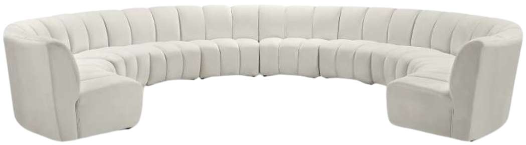 Create a seating group that works for every possible situation with this Infinity 10-piece sectional and other pieces in the Infinity collection. Upholstered in soft cream velvet material that feels great against the skin and offers long-wearing beauty.Read More