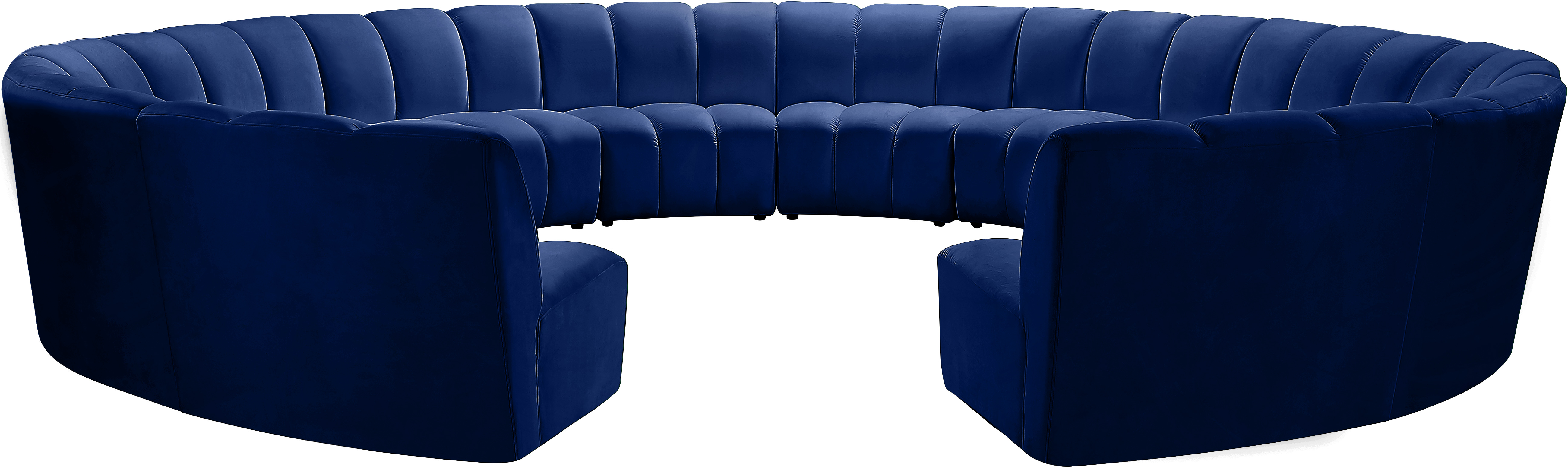Upholstered in soft navy velvet material that feels great against the skin and offers long-wearing beauty, this piece fits with other Infinity items for an infinite number of combinations that get your seating requirements just right but that look just as nice when used on their own.