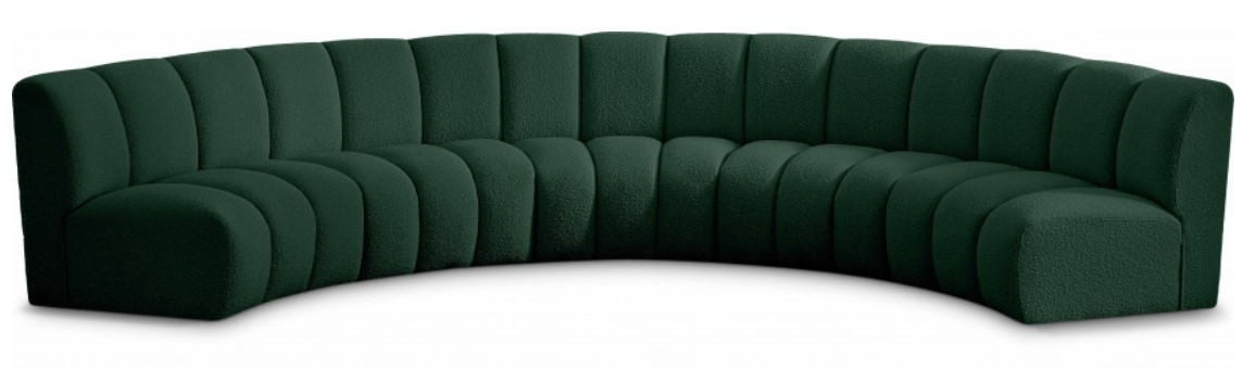 Elegant and eye-catching, the stunning green boucle fabric Infinity 5-piece. Modular Sectional from Meridian Furniture is the perfect addition to any space. The deep channel tufting adds a touch of sophistication to the sectional, making it a statement piece that will elevate any decor.Read More