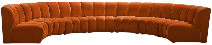 Create a seating group that works for every possible situation with this Infinity modular 7-piece sectional and other pieces in the Infinity collection. Upholstered in soft cognac velvet material that feels great against the skin and offers long-wearing beauty.Read More