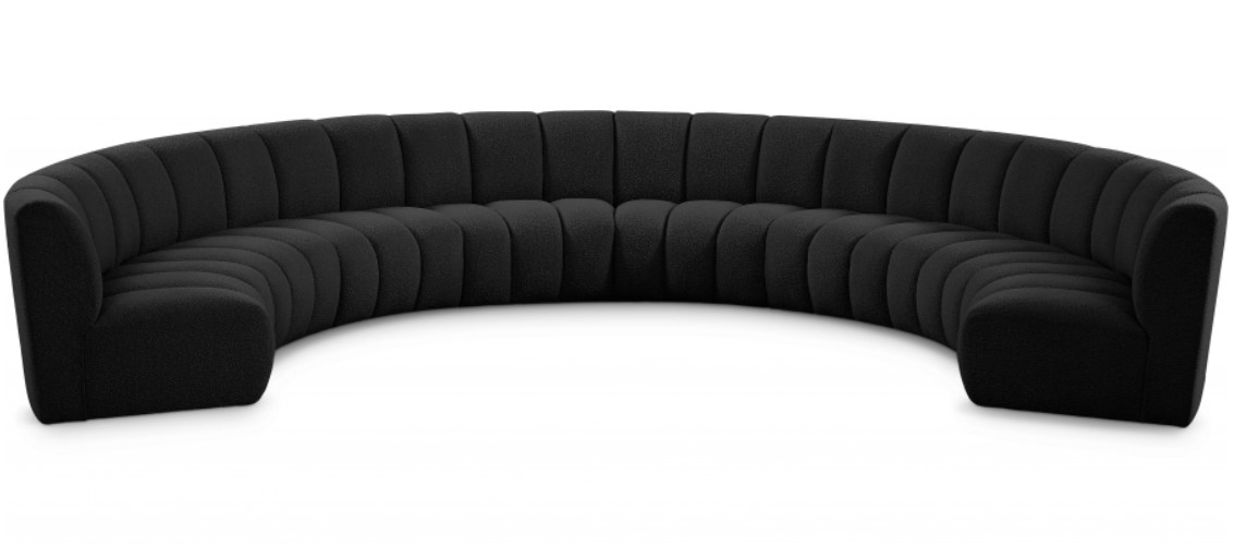 Elegant and eye-catching, the stunning black boucle fabric Infinity eight-piece. Modular Sectional from Meridian Furniture is the perfect addition to any space The deep channel tufting adds a touch of sophistication to the sectional, making it a statement piece that will elevate any decor.Read More