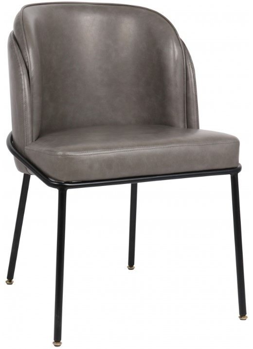 Enjoy the look of fine leather without the cruelty or expense when you bring home this Jagger faux leather dining chair. Upholstered in soft grey vegan leather, this chair features matte black iron legs for sturdy support.Read More