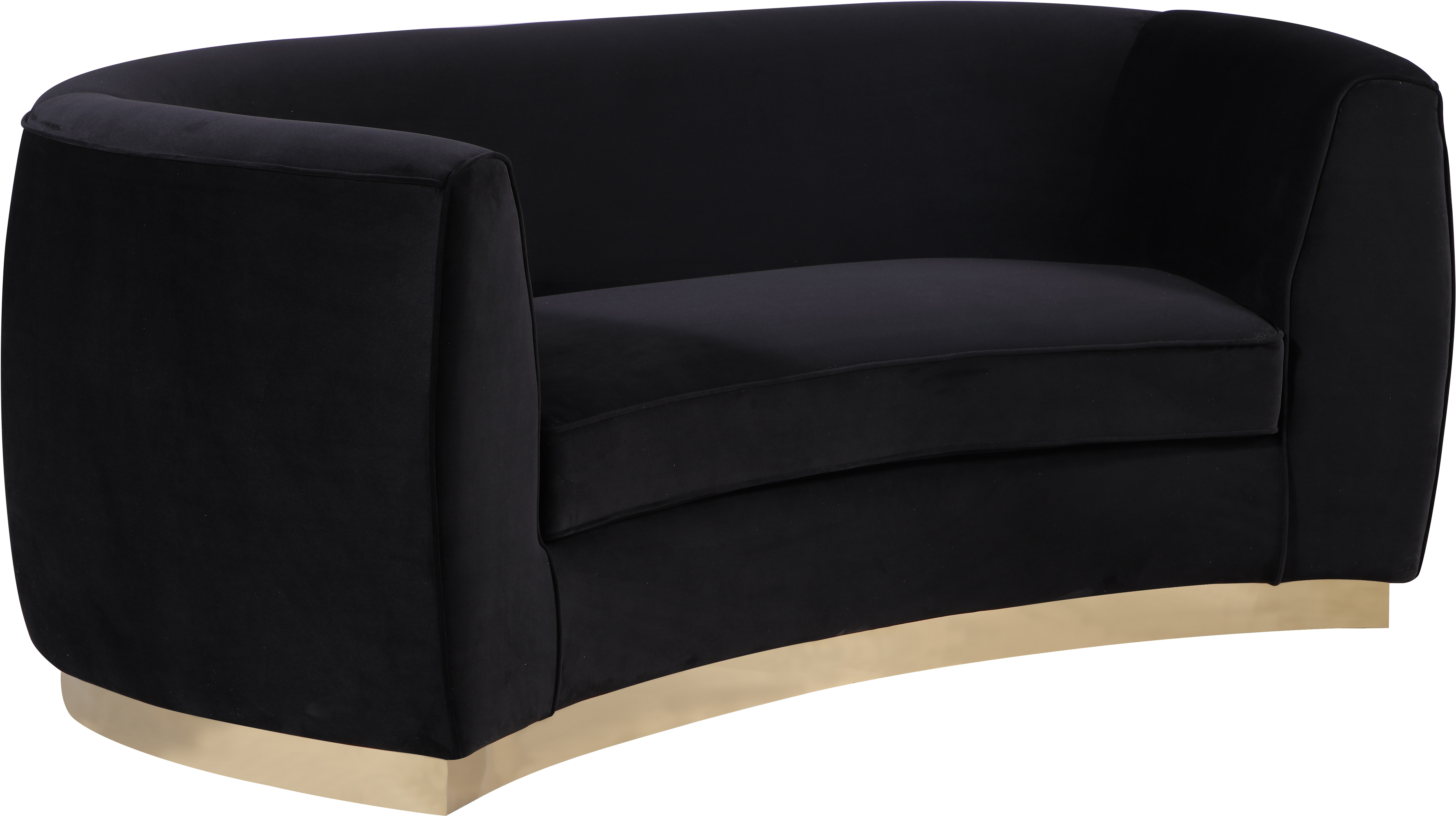 The perfect mix of black velvet and gold stainless steel comes to life in your space with this Julian Black Velvet Loveseat. This bold black velvet loveseat comes upholstered in rich, sumptuous-to-the-touch velvet to make a fashionable statement in your space.Read More