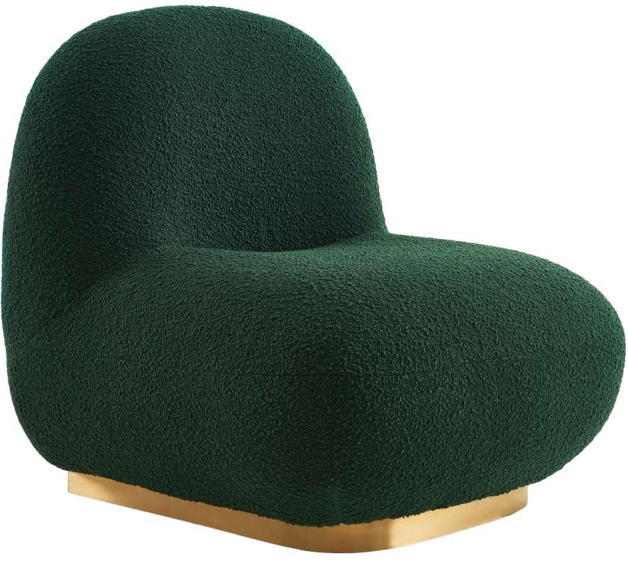Add a simple yet eye-catching touch to your home with this Liam accent chair. Upholstered with green boucle fabric and featuring a brushed gold metal base, this simplistic accent chair is both comfortable and stylish.Read More