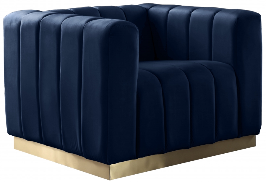 Elegant and eye-catching, the stunning navy velvet Marlon Chair from Meridian Furniture is the perfect addition to any space. Chair adds a contemporary style to any room.