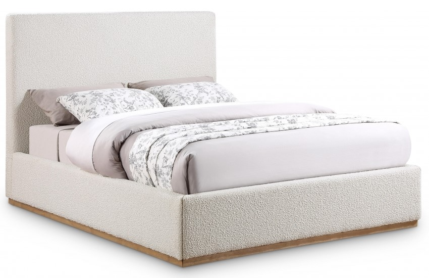 Give your bedroom a contemporary makeover with this Monaco queen bed from Meridian Furniture. Featuring a solid wood natural wire brush finish and rich cream boucle fabric upholstery, this queen-size bed is perfect for any bedroom. Its frame is crafted from rubber wood and is covered with boucle fabric.Read More