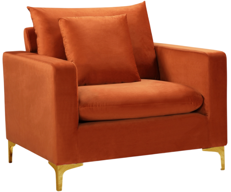 Curl up with a good book from the welcoming confines of this Naomi Cognac Velvet Chair. The color of this chair adds a bold touch to your decor and shakes up otherwise neutral color schemes. Plush velvet material feels cozy and comfortable against your skin, while deep seat cushions provide lots of room for you to stretch your legs.Read More