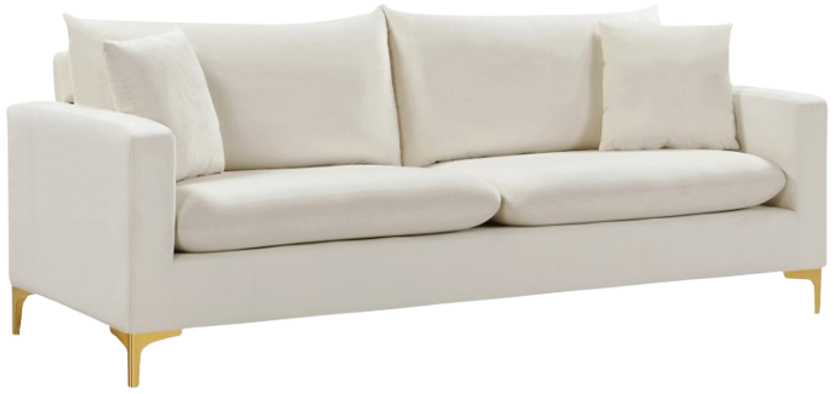 Curl up with a good book from the welcoming confines of this Naomi Cream Velvet Sofa. The color of this sofa adds a bold touch to your decor and shakes up otherwise neutral color schemes. Plush velvet material feels cozy and comfortable against your skin, while deep seat cushions provide lots of room for you.Read More