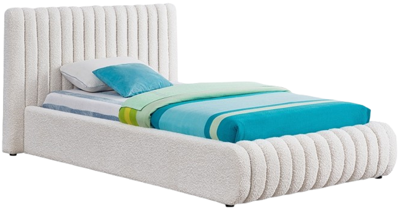 Reimagine your bedroom space when you make this Nash boucle fabric bed your own. This lovely bed features a heavily tufted headboard and footboard for a dimensional look that's both modern and elegant at the same time. The bed is upholstered all over with soft, rich cream boucle fabric that is welcoming to the touch.Read More