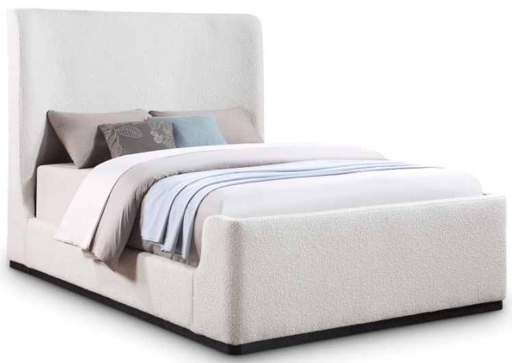 Make a bold statement with this stunning Oliver full-size bed from Meridian Furniture. Its contemporary design is comprised of rubber wood with a solid wood black wire brush finish, upholstered with rich cream boucle fabric, giving it an elegant appearance.Read More