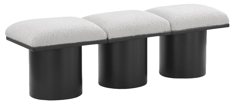 Bring valuable seating and remarkable style to your space with this cream Pavilion Boucle Fabric Bench, an exquisite balance of style and usability for the entryway, bedroom, and beyond. Crafted from oak veneer with a black finish, this bench has a 4-inch-thick seat cushion that's channel-tufted for a touch of luxury.Read More