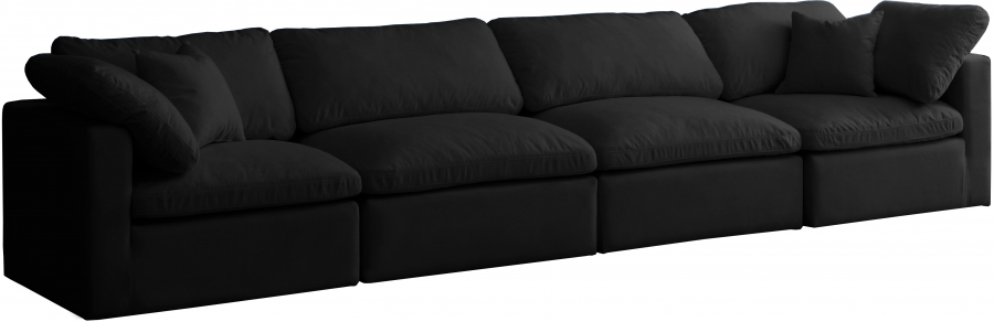 Elegant and eye-catching, the stunning black velvet Plush Standard Cloud Modular Sofa from Meridian Furniture is the perfect addition to any space.