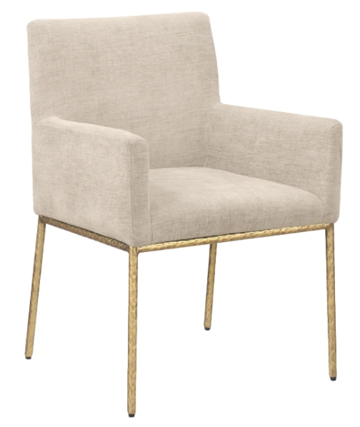 Casual comfort is the order of the day when dinner guests relax from the cozy confines of this Reeves soft beige chenille fabric dining chair. Sumptuously padded arms, back, and seat ensure total comfort from appetizers through dessert, and the neutral, solid-colored upholstered makes it easy to pair this dining chair with the table of your choice.Read More