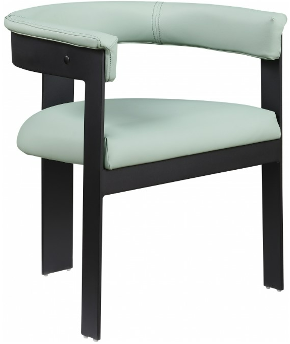Rehab your dining area with this black Romeo vegan leather dining chair, sold as a set of two. This chair offers style and comfort, with a soft mint green vegan leather seat and back providing a sleek and inviting look that meshes well with an array of dining tables.Read More