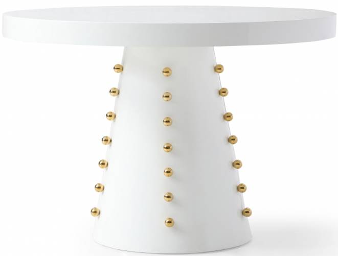 Round white lacquer dining table.