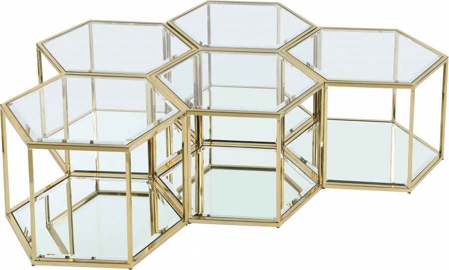 Elegant and eye-catching, the stunning brushed gold Sei Coffee Table from Meridian Furniture is the perfect addition to any space.