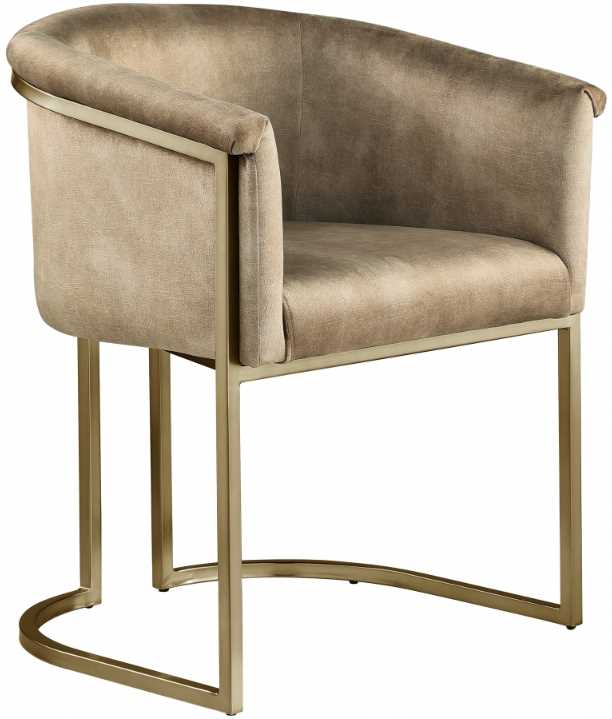 Enjoy body-hugging comfort at every meal with this Tierra velvet dining chair. Rich beige velvet covers the seat, arms and back of this comfortable yet beautiful chair. The frame is made from durable metal for resilient, long-lasting use, and it features a brushed brass finish for a look that's both modern and elegant.Read More