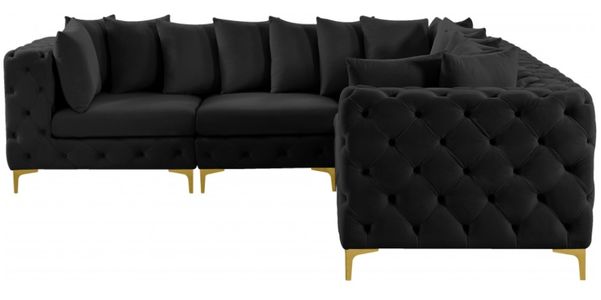 Lean back and relax on this Tremblay sectional. Featuring soft black velvet upholstery with deep button tufting, this sectional adds a bold touch to any living space. A complete set of gold and chrome legs are included, so you can change it up to suit your home décor.Read More