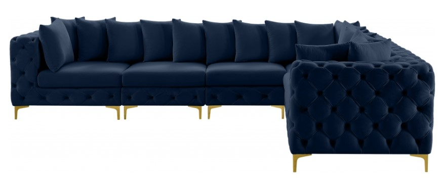 Lean back and relax on this Tremblay sectional. Featuring soft navy velvet upholstery with deep button tufting, this sectional adds a bold touch to any living space. A complete set of gold and chrome legs are included, so you can change it up to suit your home décor.Read More